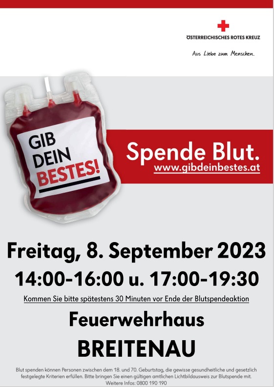 Blutspenden am 8. September 2023 im Feuerwehrhaus!