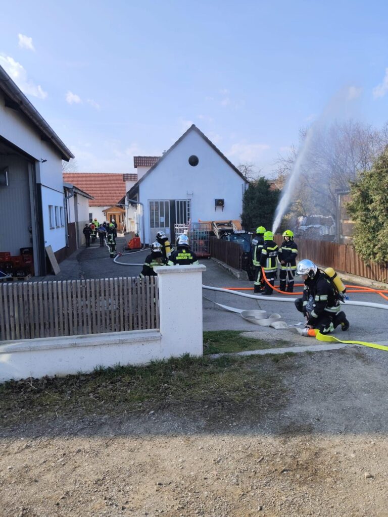 Übungsannahme war ein Küchenbrand bei einem Mostheurigen mit mehreren vermissten Personen.