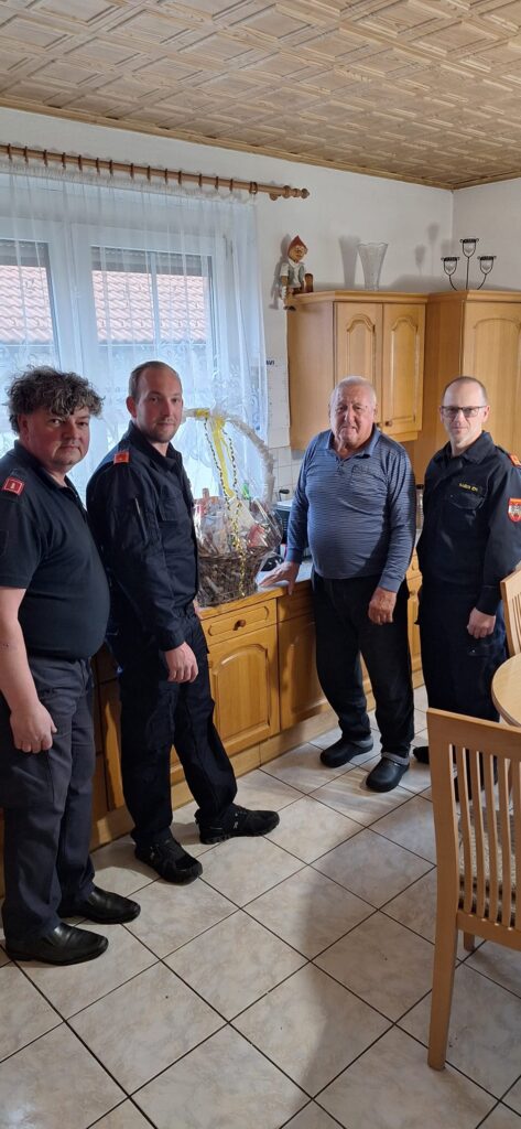 Eine Abordnung gratulierte im Namen der Feuerwehr Breitenau und überbrachte einen Geschenkkorb.