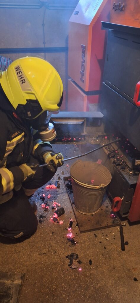 Daher wurde das gesamte Heizgut ausgeräumt und abgelöscht und der Heizraum belüftet.